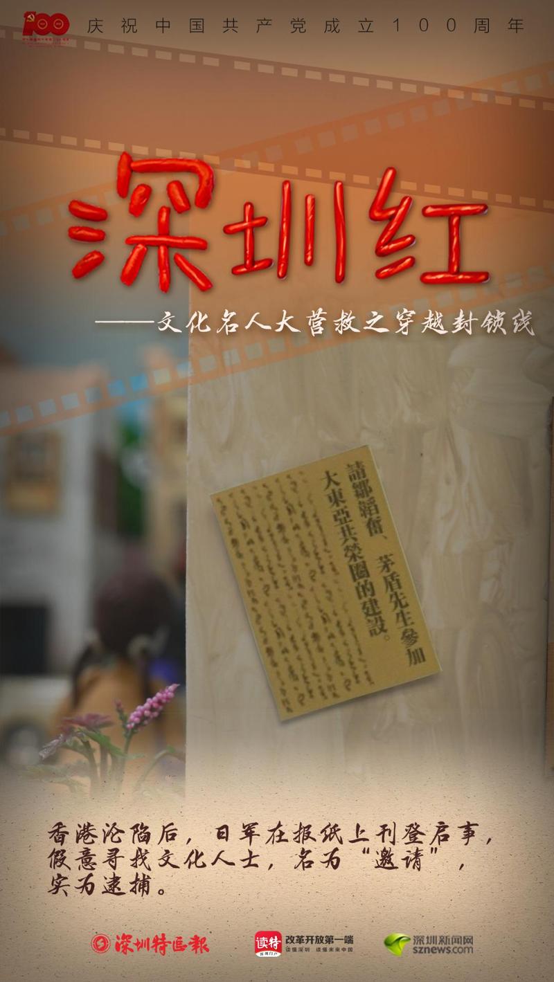1941年12月,太平洋战争爆发,香港沦陷。日军将矛头指向了当时身藏香港岛、坚持抗日发声的一众文化名人,在报纸上刊登启事,假意寻找茅盾、邹韬奋等人出面共建“大东亚共荣圈”,名为“邀请”,实为逮捕。