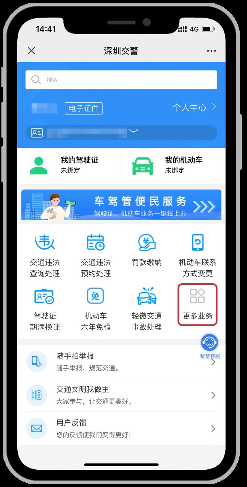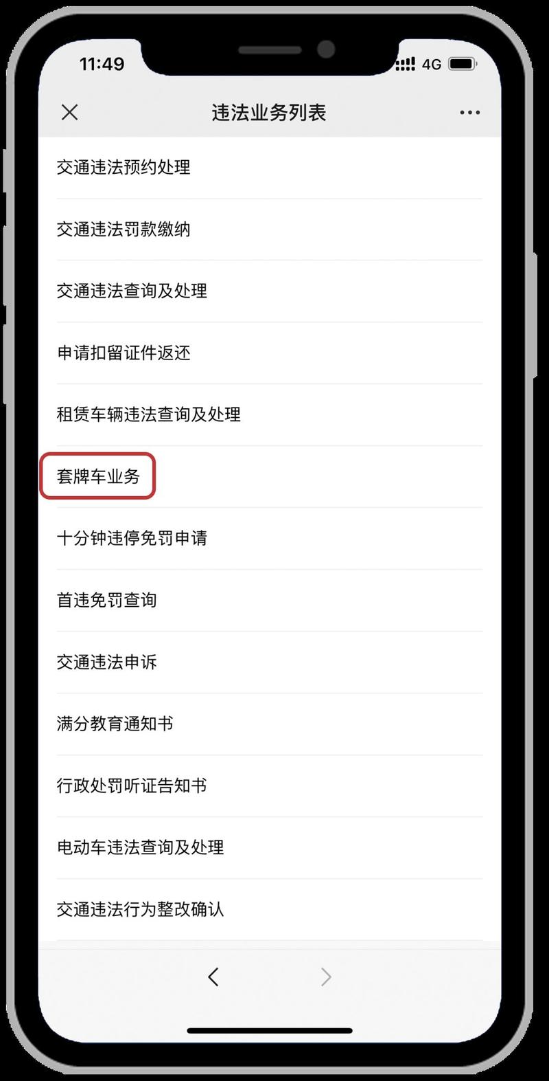 关注“深圳车管所”微信公众号,注册登录星级用户。在主页点击“更多业务”,在违法处理业务版块选择“套牌车业务”;