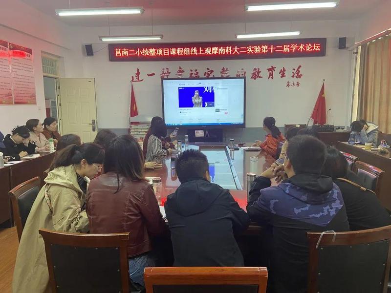山东省莒南县教体局组织全县项目化学习实验校的老师们通过网络远程学习。