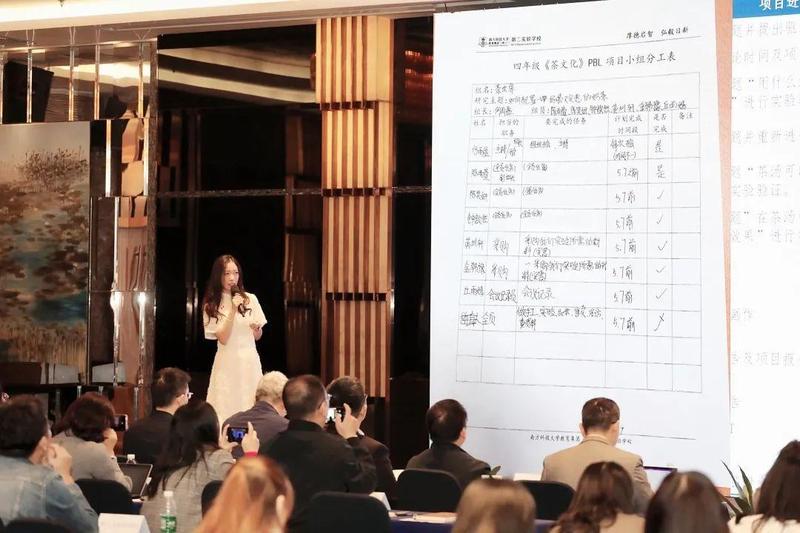 四年级项目负责人詹雅雯老师为大家详细介绍了课程的九大环节、课程环节与亮点与课程反思。其中,詹老师提到《十岁花果茶》小组通过项目课程进行了初创业,设计出六种功效茶,小组还有完整的产品包装设计等一系列专业设计,小组成员将赚到的钱捐给了深圳自闭症儿童关爱中心和绿色蔷薇儿童话剧社,让整个课程更加具有社会意义。