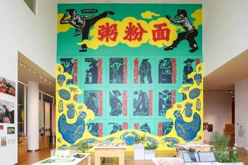 这件包含了29幅木刻版画的巨幅招牌,引用广式饮食的独家记忆——一盅两件的早茶文化,“食得咸鱼抵得渴”等俚语,让观众在烟火气中重拾与食物相伴的人情冷暖。