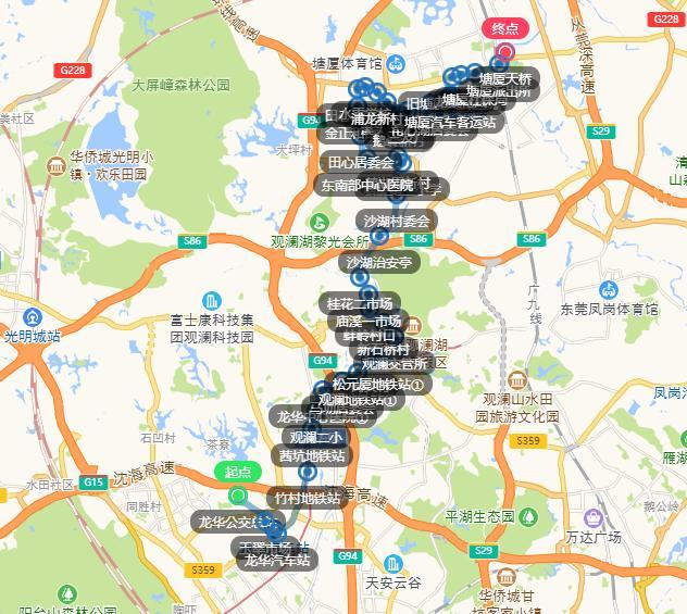 深圳端总站由茜坑新村总站变更为龙华公交总站。