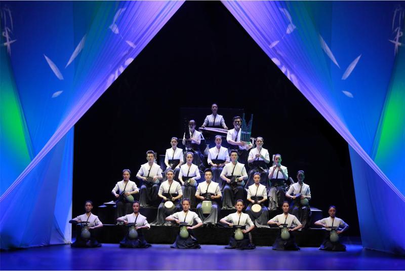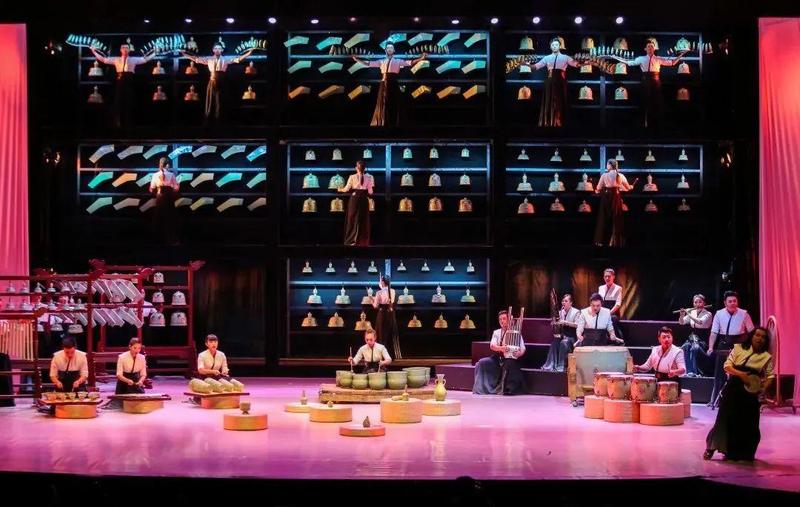 《听·瓷》以青瓷发展历史为脉络,以青瓷文化为连接点,以构成青瓷元素的金、木、水、火、土五行为表现点,跨界融合多种舞台表现形式,通过《叩天》《元尘》《拙焱》《汲露》《锻烁》《祈桑》《听瓷》七个篇章,展现古韵悠悠之美,令现场听者仿佛时空穿梭,回溯历史长河,畅游一番大美中国。