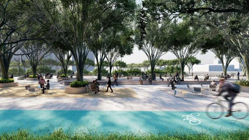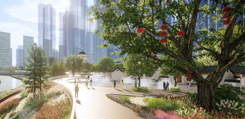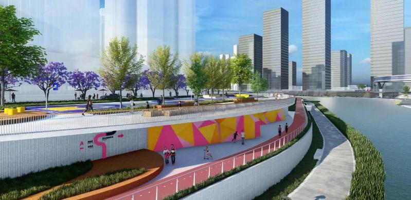 释放城市存量,城市更新与碧道开发同步一体。北岸打造创意办公和集市相结合的创客中心及公园,重塑现代、开放的城水风貌。通过艺术装置营造年轻活力的都市滨水场所。