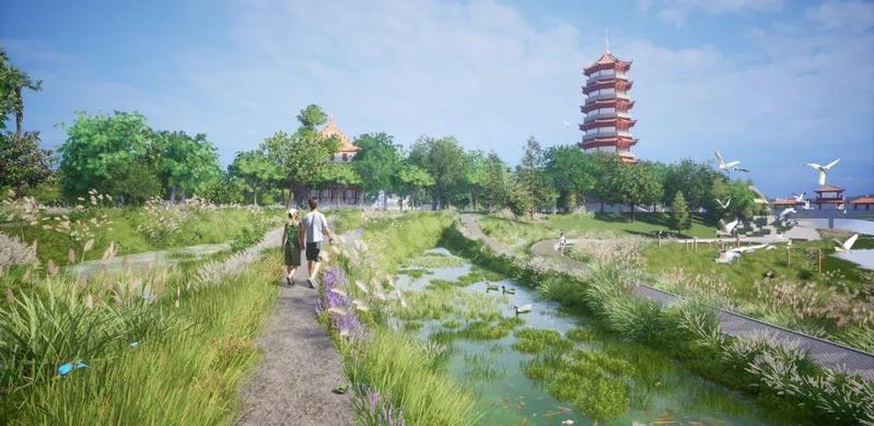 打造目标为碧道挡墙的修补、提升、美化、休闲贯通,以及河道中、滨河生态植栽的保护。创造特色观景平台、活动场所等停留观景空间,增加临河观景界面,增大休憩空间。