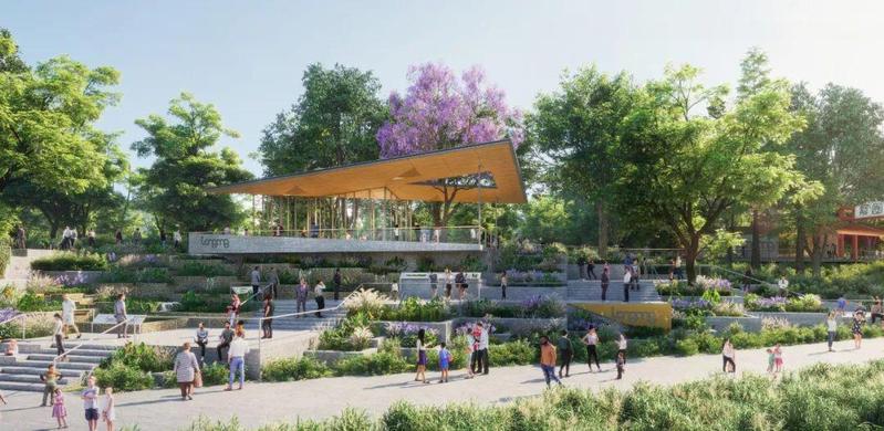 堤岸构筑叠级湿地带,净化、滞留、过滤雨水,减轻地表径流,提升河道水质,降低河道汛期排洪压力。多层级的雨水湿地花园为生物搭建起生态的栖息场所,为市民亲水体验与环境教育科普提供新场所。