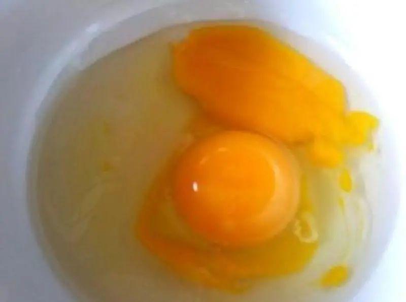鸡蛋打开后在蛋黄上有血块的叫血斑蛋,有肉块的叫肉斑蛋。血斑蛋是母鸡在排卵时血管破裂,血流在蛋中形成的。饲料中缺乏VK时也会出现血斑蛋。出现肉斑蛋的原因是当卵泡进入输卵管时,输卵管的部分粘膜上皮组织脱落,随卵泡一起被输卵管分泌出来的蛋白包围,形成肉斑蛋。