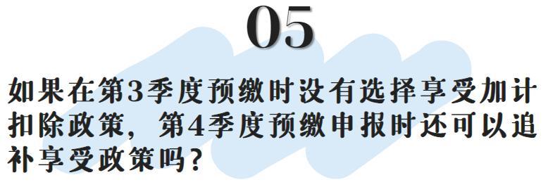 不可以。为简化操作,企业办理第3季度或9月份预缴申报时,未选择享受研发费用加计扣除优惠政策的,第4季度或10-12月预缴申报时不再追补享受该政策,但可在次年办理汇算清缴时统一享受。