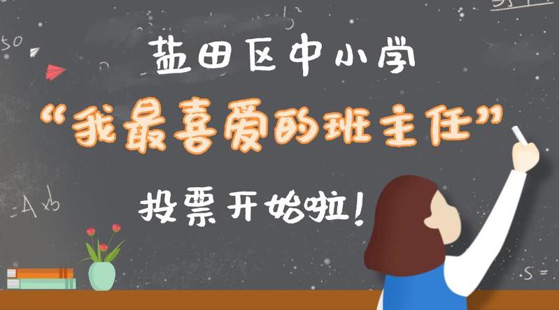 为进一步增强中小学班主任的使命感、责任感和荣誉感,营造全社会理解、支持班主任工作的良好氛围,推选“学生喜爱、学校认可、家长满意、社会尊重”的优秀班主任典型和模范,盐田区教育局联合区总工会组织开展2021年盐田区第三届中小学“我最喜爱的班主任”评选活动。谁是你最喜爱的班主任,请投出您宝贵的一票吧!
