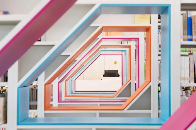 图书馆里最让发布君惊喜的,莫过于位于书架之间可以半躺的彩色阅读区域了。