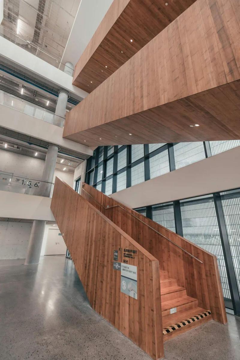 坪山图书馆的旁边是坪山美术馆,是不少文艺爱好者的“宝藏之地”。从外观看,这里的每一处转角,都充满了艺术感。相较于许多常规的美术馆,这里更加前卫、大气恢弘。