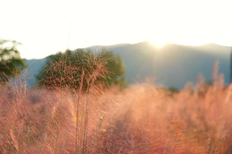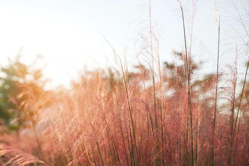 金灿的阳光、粉红色的乱子草