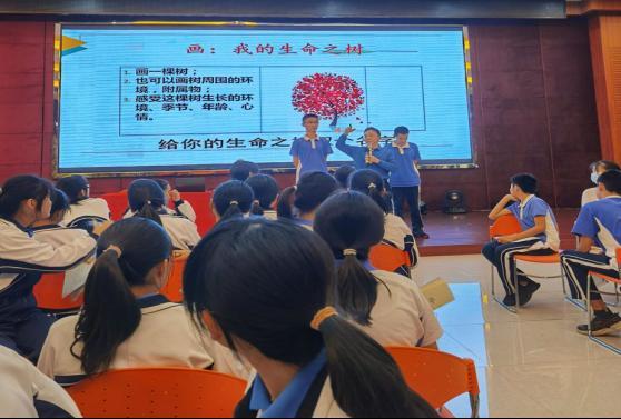 在天誉实验学校,一至四年级举办“小小少年勇担当”护蛋行动,同学们当起蛋宝宝的“爸爸”“妈妈”。五六年级举办“风华少年志气扬”班级手语表演大赛,以生命为主题,用无声的语言传递生命的温度。七八年级开展以生命为主题的心理剧,学生自编剧本、自导自演,在创作中发现问题、分析问题和解决问题。