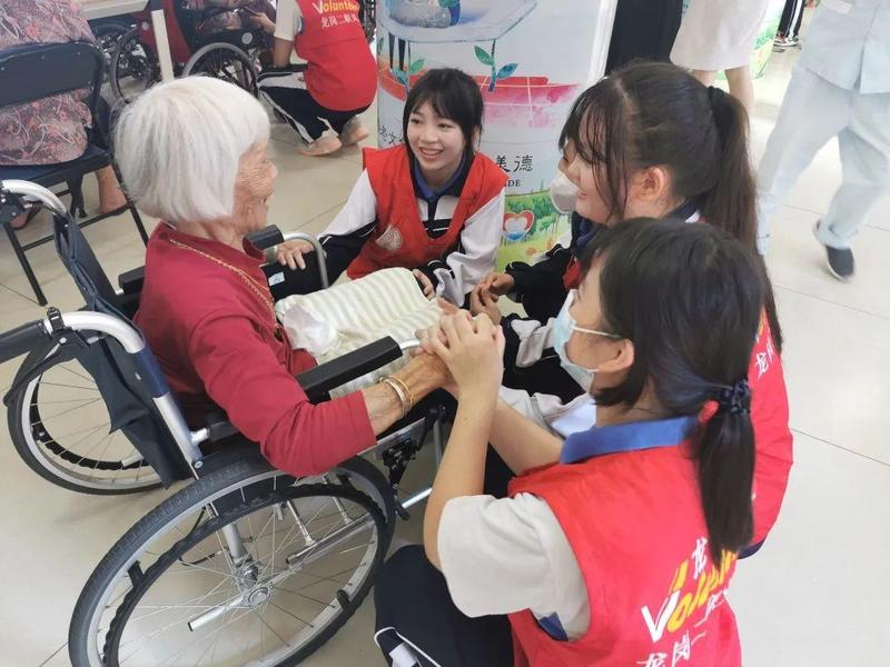 龙岗区第二职业技术学校结合重阳节主题,组织“青春照映晚霞,感悟生命成长”敬老慰问活动。同学们倾听老人们的生命故事,感悟不一样的生命历程。