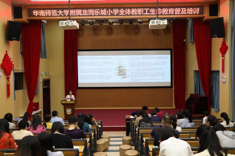 华南师范大学附属乐城小学邀请了宝安区新安中学(集团)第一实验学校郑晓芬主任,到校开展了《拓展生命长宽高》生命教育主题讲座。郑主任着重讲述如何开展跨学科渗透生命教育课程,将生命教育成为日常学科教学的常态。