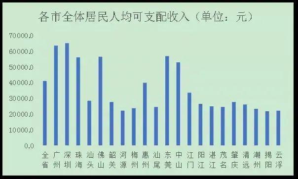 从地市来看,2020年,深圳、广州、东莞居民人均可支配收入最高,其中东莞农村居民人均可支配收入位居全省第一。