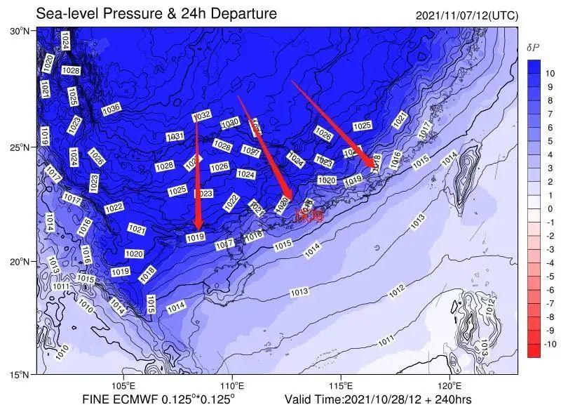 11月上半月南海仍有台风活动,期间叠加冷空气共同影响,沿海地区将出现8-9级阵风;