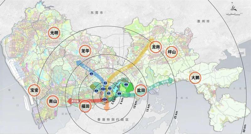 60 分钟到大湾区各城市中心(广州、河源、中山、珠海等)的交通圈,基本实现罗湖对湾区城市中心的高速通达