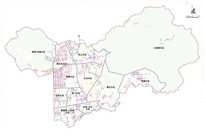 以片区为单元,系统梳理和优化片区内部微循环路网系统,结合城市更新规划统筹规划新增、改造支路 286 条,总长约127.5km。