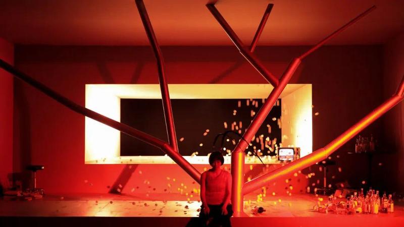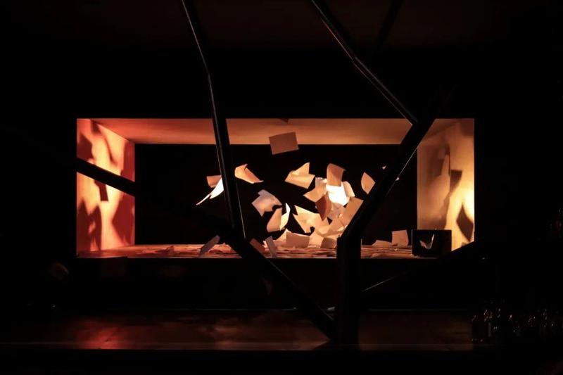灯光设计师王琦,利用舞台的灯光颜色的调配,方向的转换,光质的颗粒感,造成舞台上的假定性所引申出的个人心理空间,将现实空间与假想空间融合并生。