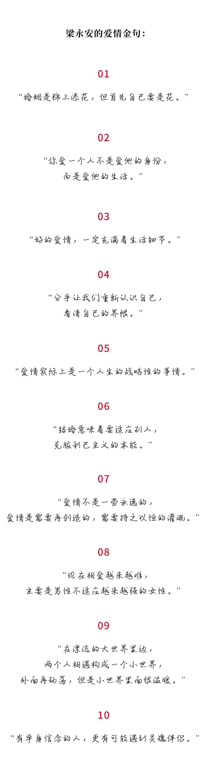 所以,梁永安主张,“今天的年轻人,一定要有特别坚定的单身信念”。也就是说,一个人不依靠别人,也可以在世界上过得很好。先找到自己生命的落点和价值。如此,往上,有可能遇到灵魂伴侣。往下,也可以遇到很善良的恋人。