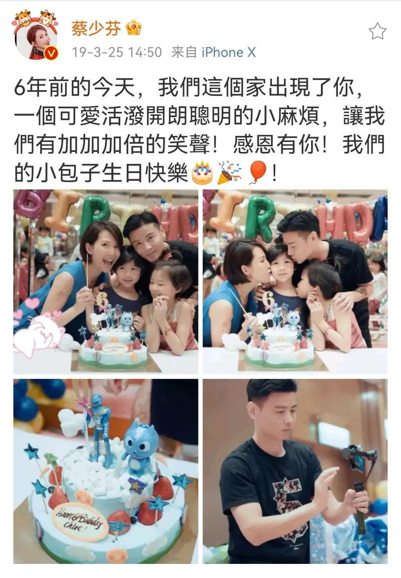 蔡少芬为孩子准备的生日蛋糕上