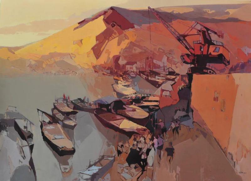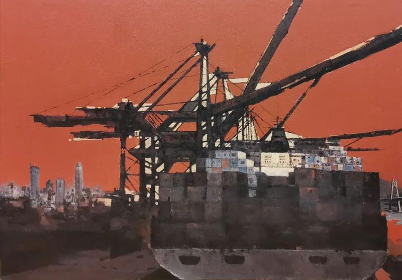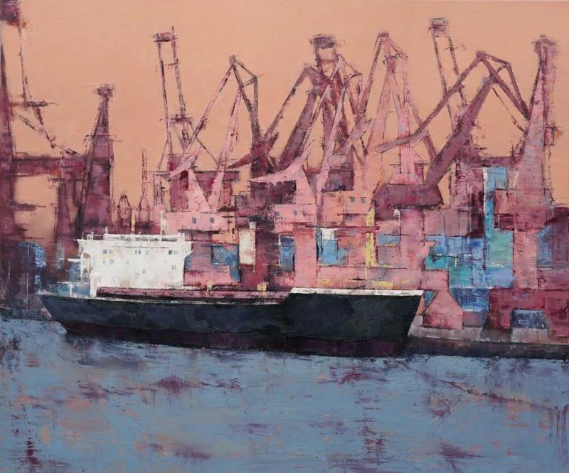 杨明《霞辉中的蛇口港》100×120cm 布面油画 2021年
