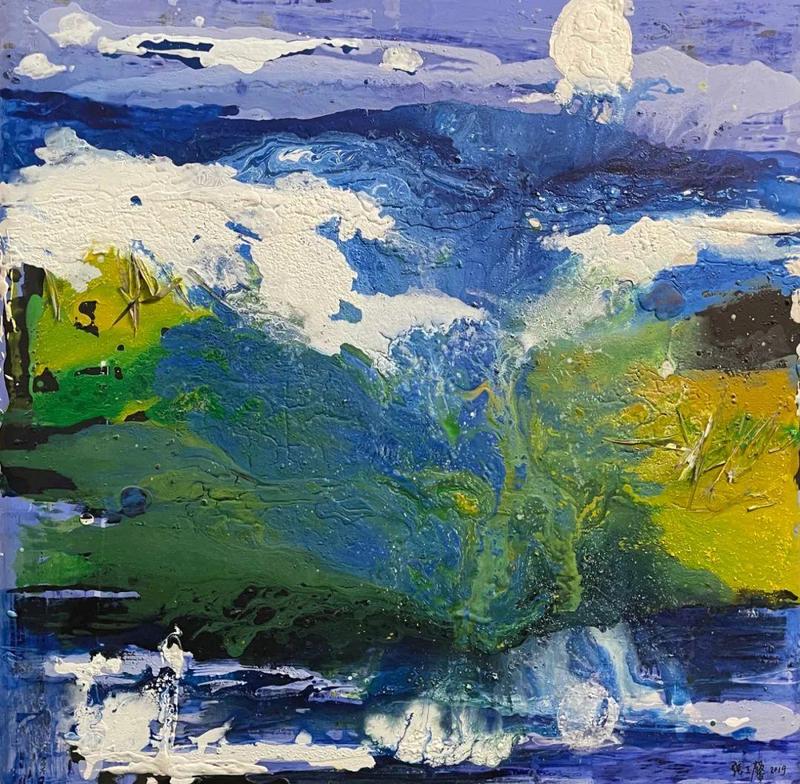 张玉馨《海上升明月》150×150cm 综合材料 2021年