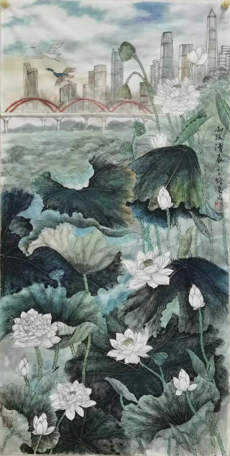 刘凌《雨后清晨》138×69cm 纸本设色