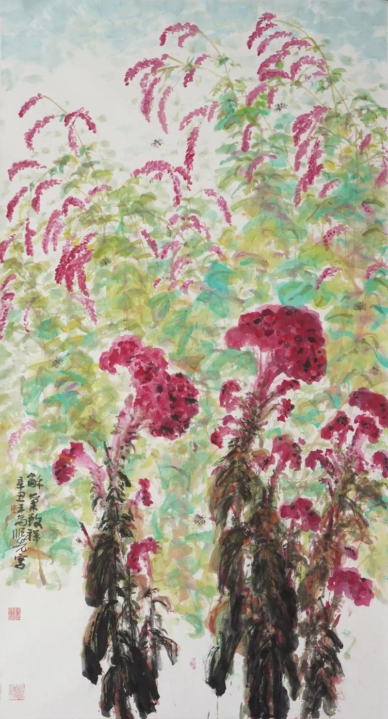马顺先《和气致祥》180×96cm 纸本设色 2021年