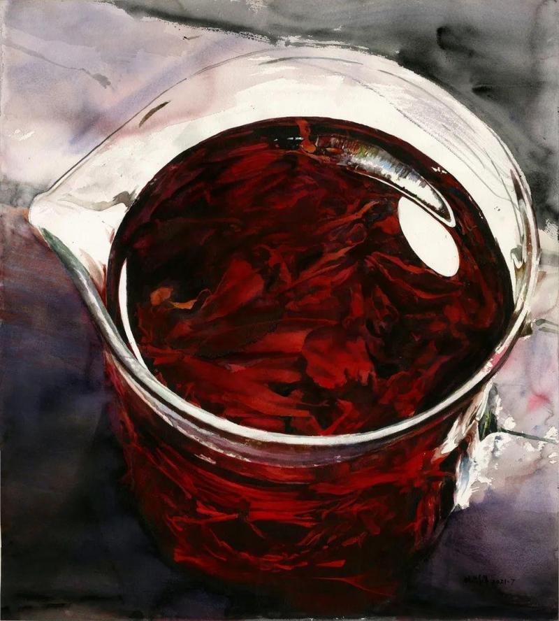 林影萍《一杯红茶》108×79cm 纸本水彩 2021年