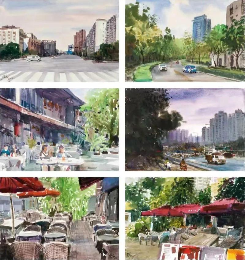 方晓龙《都市速写》27×39cm×6 纸本水彩 2021年