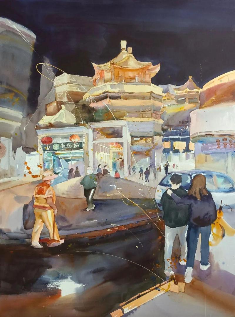 李夏《老街》112×83cm 纸本水彩 2021年