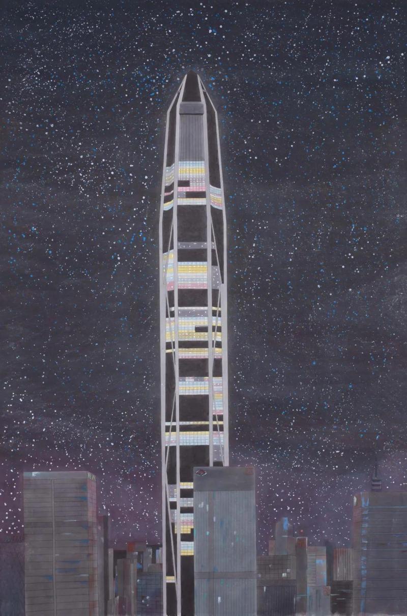 苗瀚文《夜空中的都市》145×97cm 纸本设色 2020年