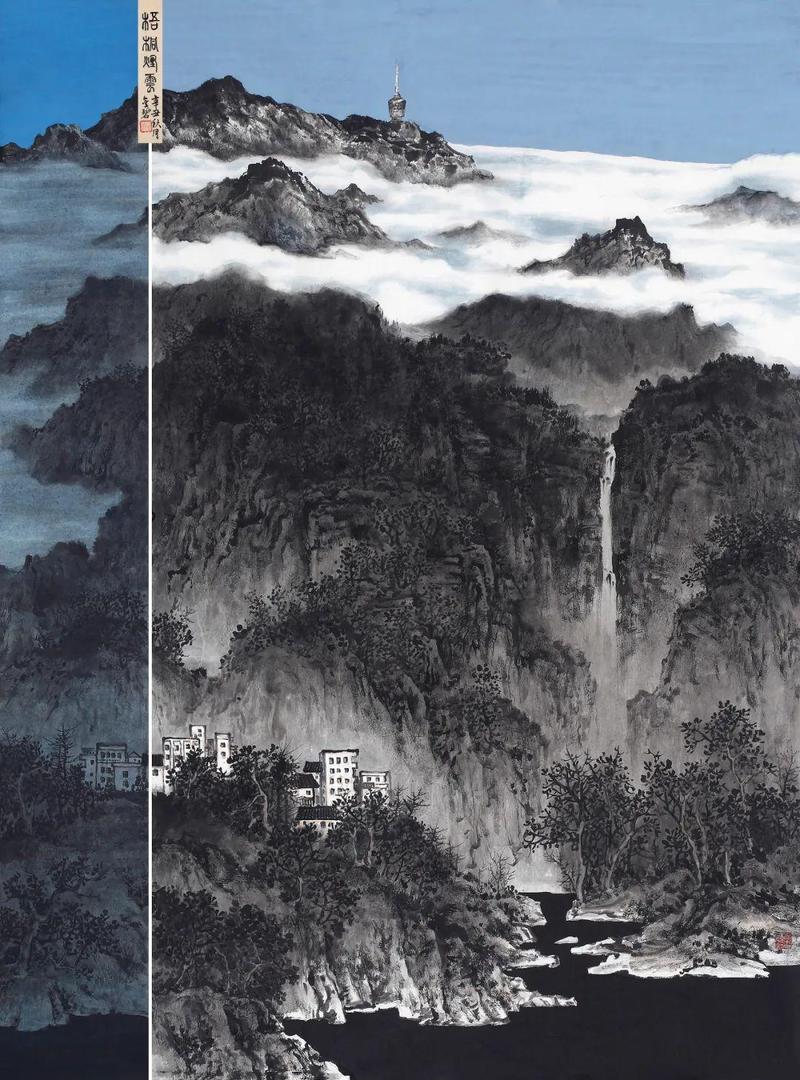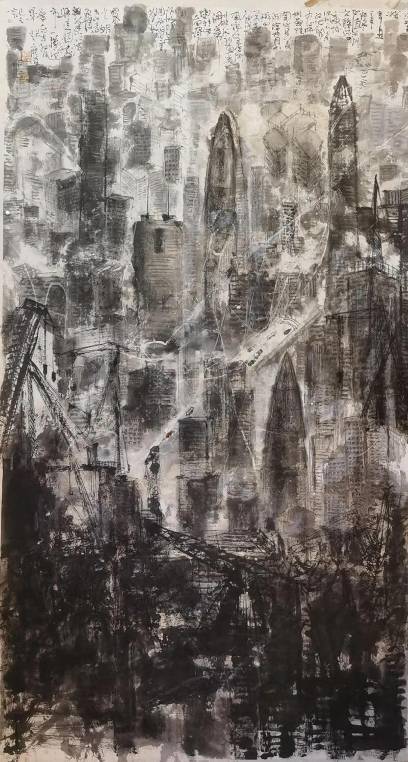 练威鹏《筑梦都市》138×69cm 纸本水墨 2021年