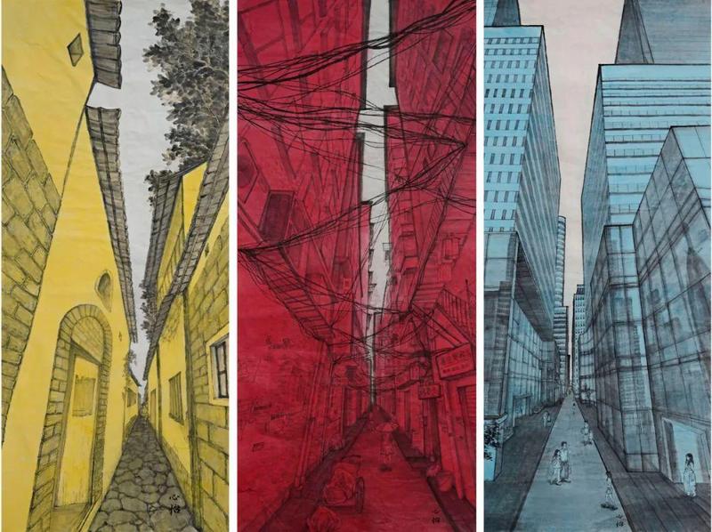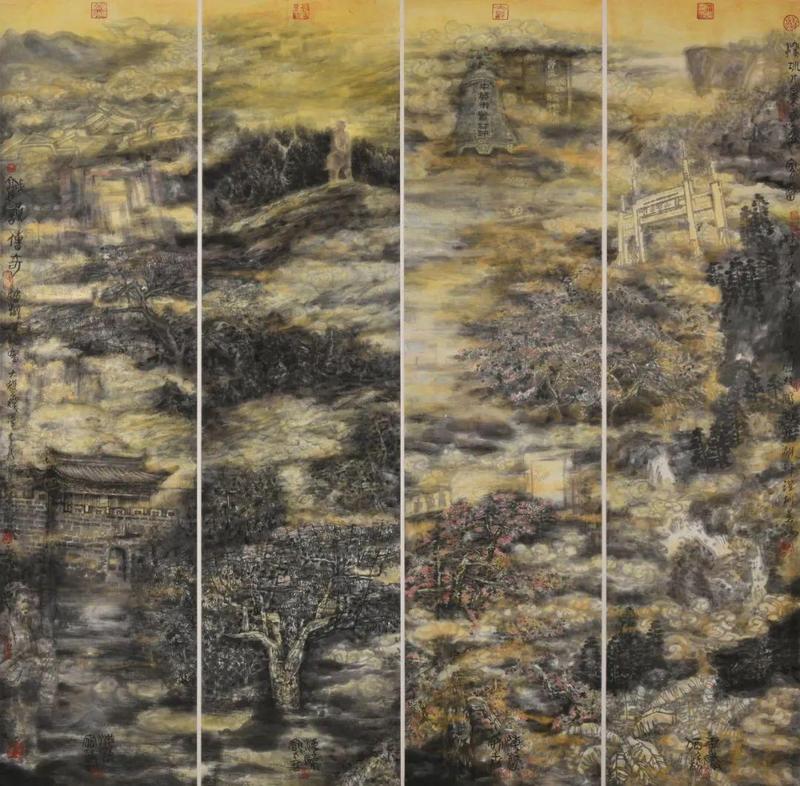 海岩宿千《城韵传奇-鹏城记忆2》138×35cm×4 纸本设色