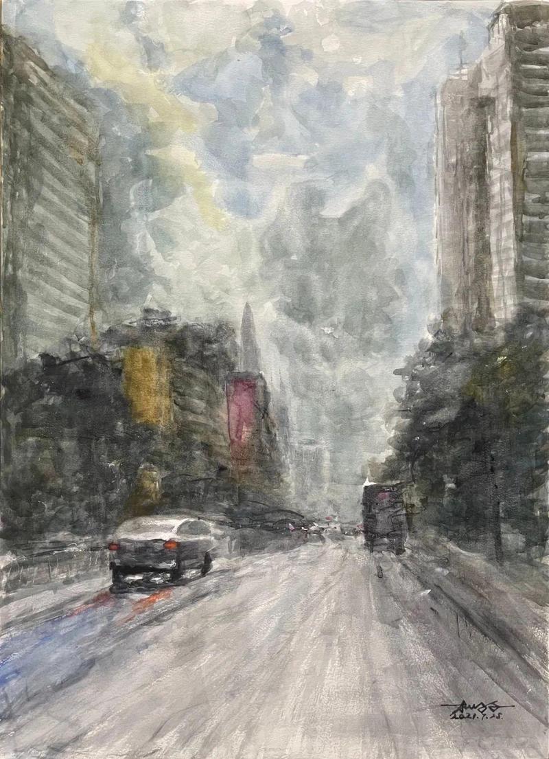 陈跃刚《在路上3》56×76cm 纸本水彩 2021年