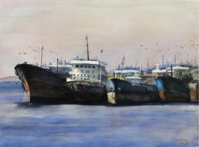 雷水云《蛇口渔港》53×76cm 纸本水彩