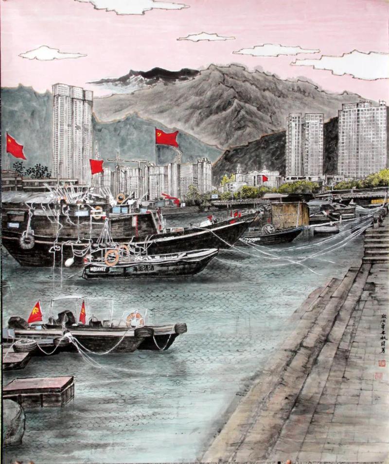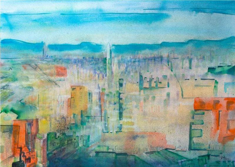 皮祥玲《鹏城掠影》93×90cm 纸本设色 2021年