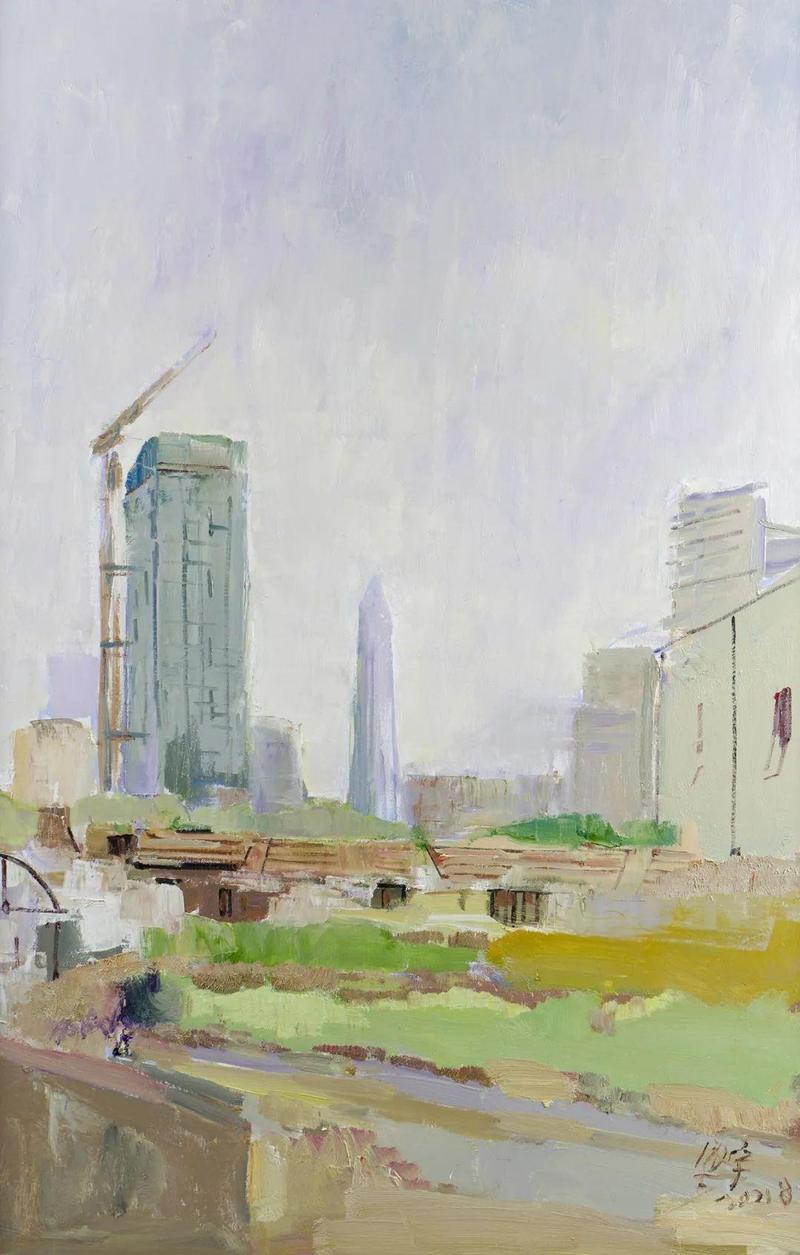 陈海珍《城市在建设》80×120cm 布面油画 2021年