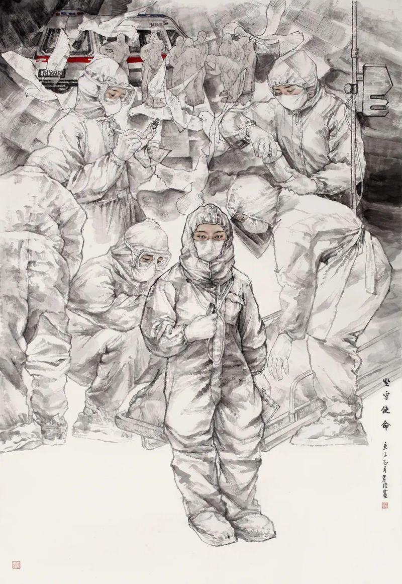 王君强《坚守使命》180×122cm 纸本设色 2020年