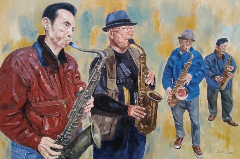刘兴建《清晨,我们奏响和谐的乐章》100×150cm 布面油画 2021年