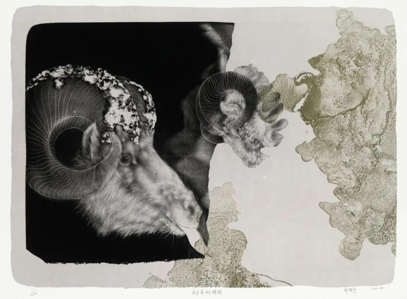 许浩宇《关于羊的描绘》43×60cm 石版画 2014年