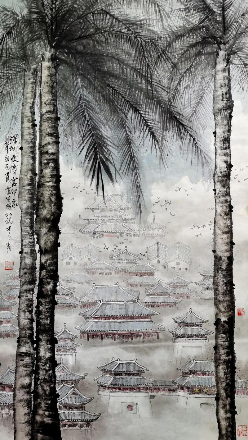 李文秀《深圳文博宫印象》198×98cm 纸本水墨 2021年