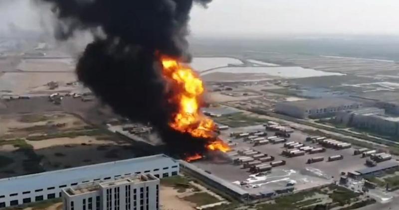 2020年7月15日,山东东营港经济开发区一危险化学品专用停车场内,一辆装载轻质油车辆发生冒罐燃烧,导致车辆起火爆炸,引起周边其他车辆着火,事故造成8人烧伤。