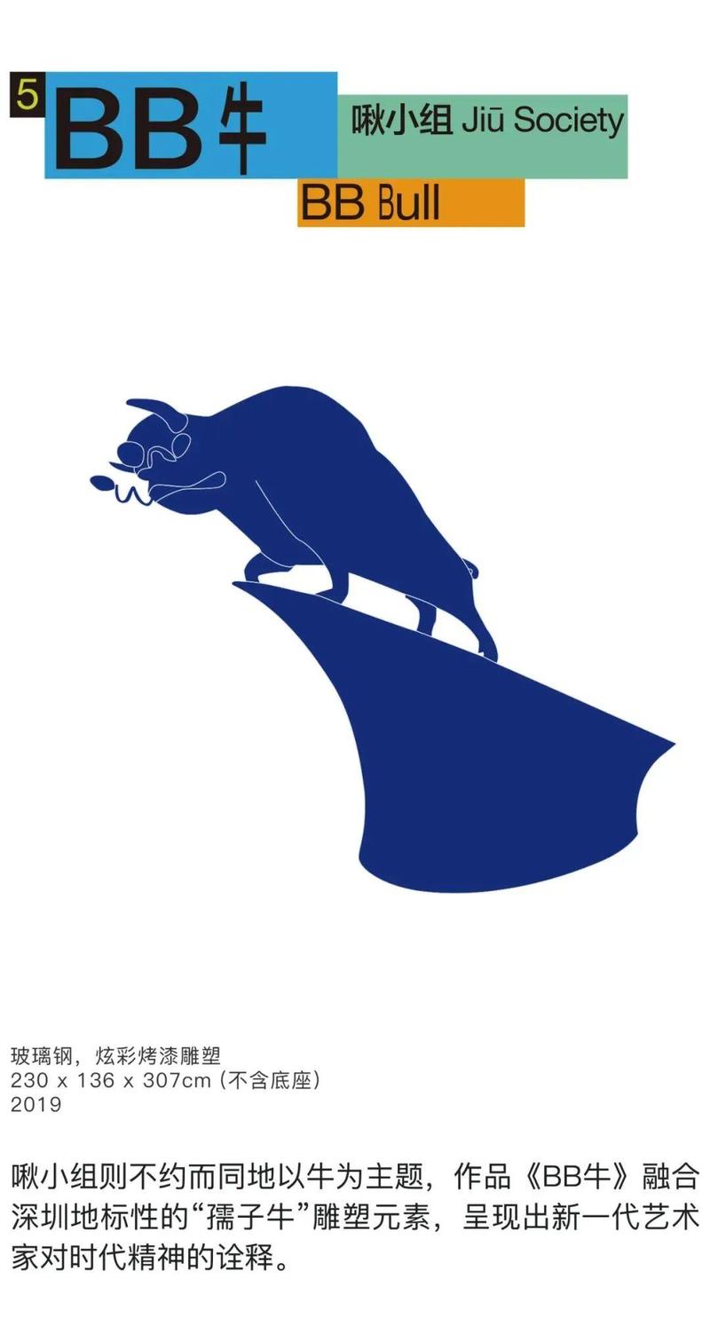 邻近不远,在A4、A5栋之间的斜坡上,可以看到“啾小组”的作品《BB牛》。熟悉深圳的人都会知道雕塑家潘家鹤《开荒牛》的经典造型,而“啾小组”则以新一代深圳人的眼光对这件经典作品进行了“挪用”,映照深圳人打破限制,不畏世俗的精神。