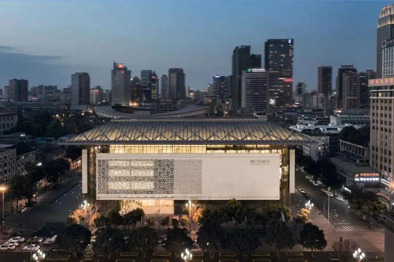 四川大剧院是四川省目前规模最大的综合性多功能剧场,由一个1601座特大型甲级剧场,一个450座多功能小型剧场,多功能厅,电影院及文化配套用房、演员用房、办公用房、地下车库及附属用房组成。建筑造型别具汉风蜀韵的风格,与天府广场周边即将建成的省图书馆、省美术馆、市博物馆,以及广场整体风格协调统一。