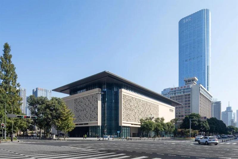 建筑立面以印篆体书写“四川大剧院”构成核心要素,现代材料的应用彰显剧院建筑特有的文化内涵。