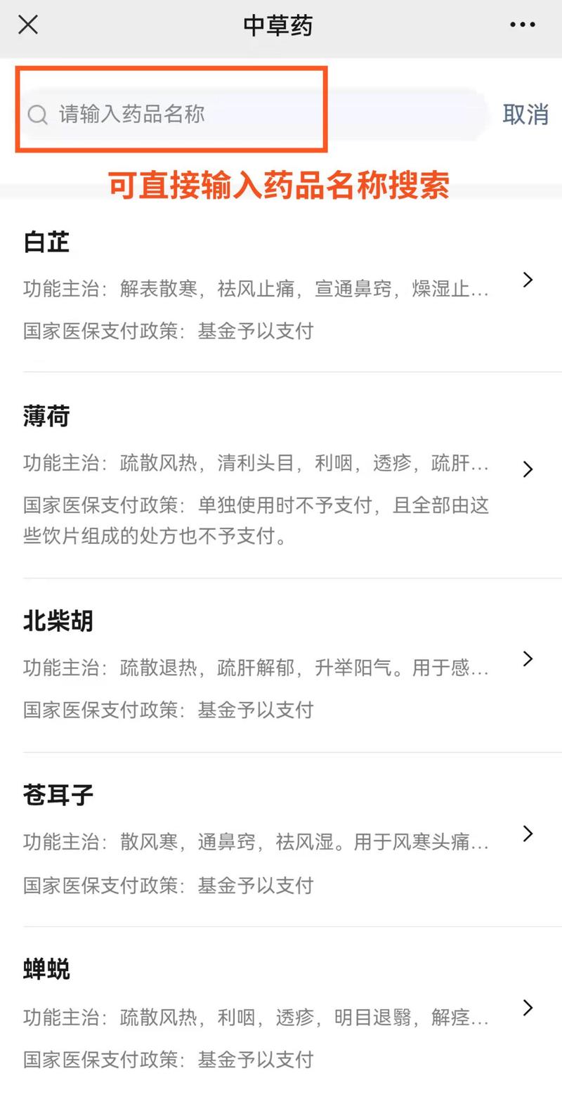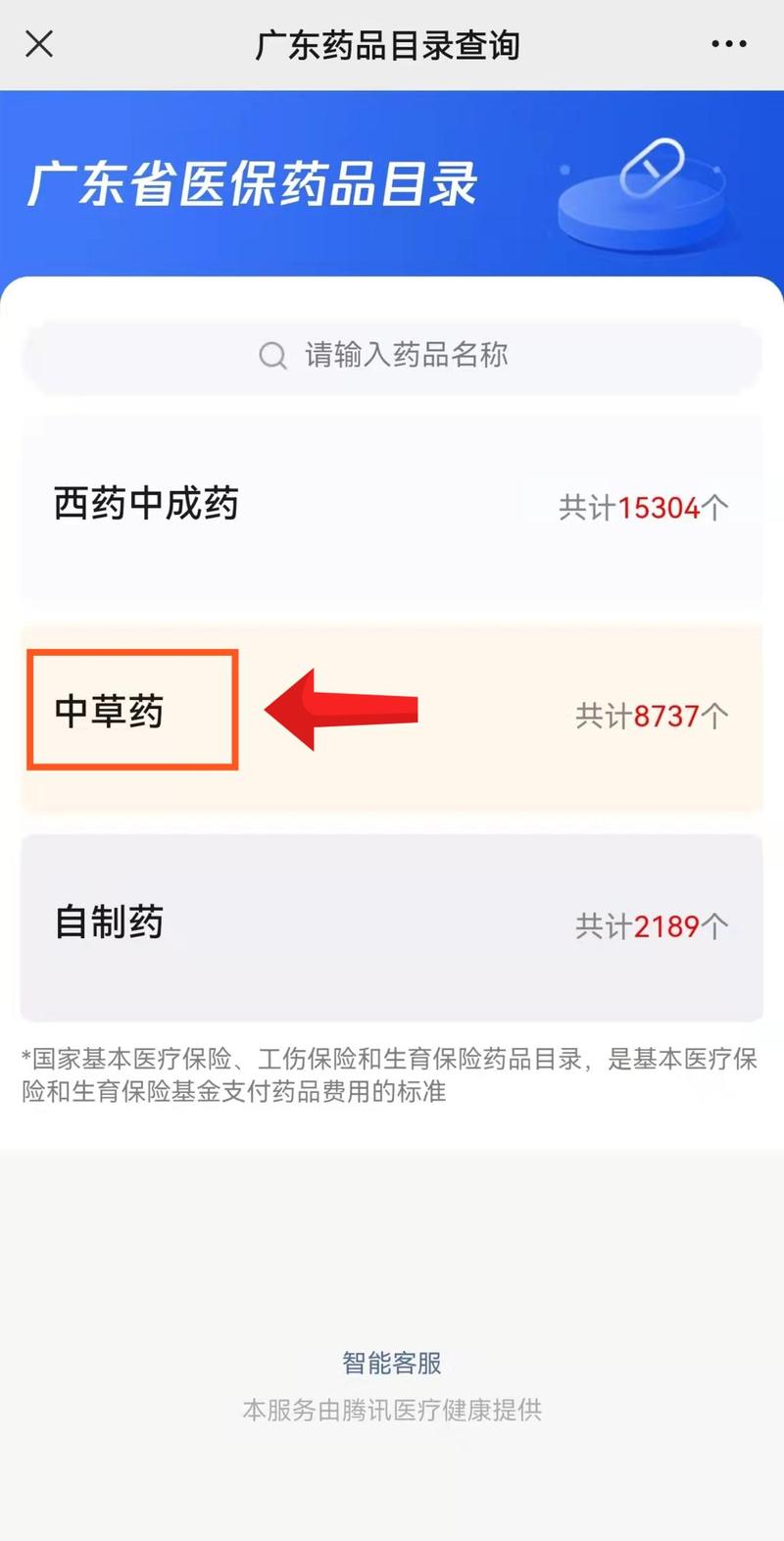 路径:医保公共服务查询→广东省医保药品目录→中草药