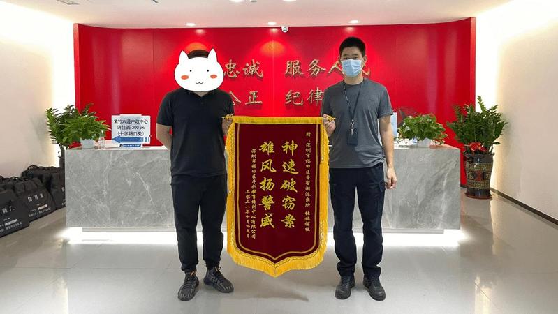 被盗电脑顺利找回,该公司员工代表李先生带着一面锦旗来到香蜜湖派出所表达谢意。“真的很感谢你们,警察同志,没想到这么快就帮我们找回了笔记本电脑。”李先生激动地说。